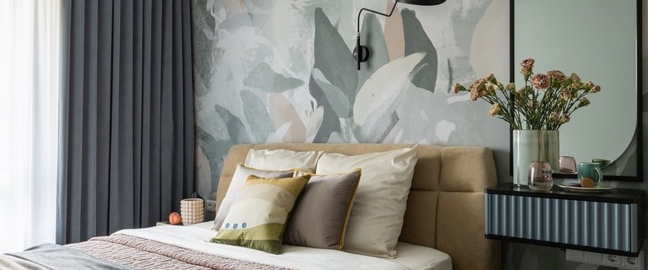 Для спальни подходят мягкие и приглушённые цвета: дымчато-розовый, серо-голубой, светло-оливковый, беж с лёгким серым подтоном. Они не утомляют глаза, а благодаря флизелиновой фактуре выглядят глубокими и благородными. На их фоне легко сочетать светлую мебель и текстиль разных оттенков, не рискуя «переборщить» с цветом.